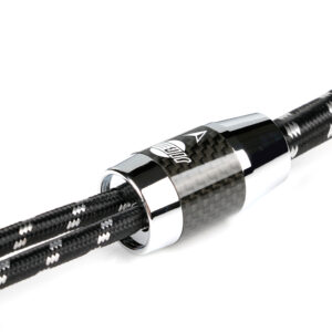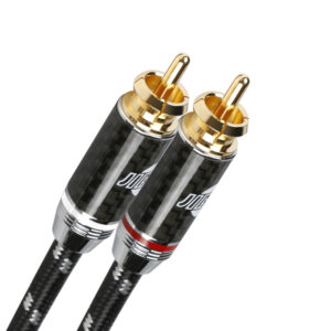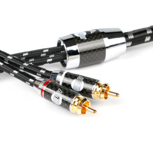Der Außenmantel besteht aus PVC mit Ø 6,0 mm und wird durch ein robustes schwarzes Baumwollgeflecht verstärkt, das Vibrationen dämpft und die Abriebfestigkeit erhöht. Die vergoldeten RCA-Stecker sitzen in lackierten Metallgehäusen in perlweiß oder silber.
