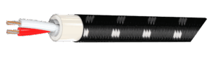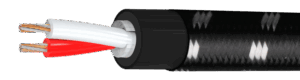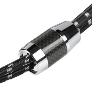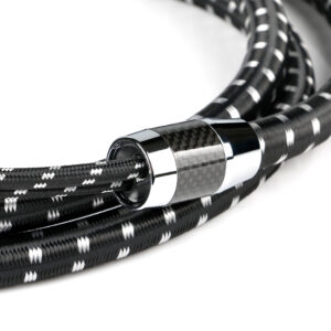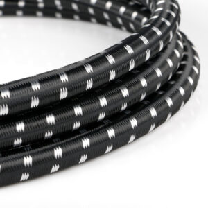 Der Außenmantel besteht aus widerstandsfähigem PVC mit Ø 7,8 mm und ist vollständig mit einem schwarzen Baumwollgeflecht umwebt.